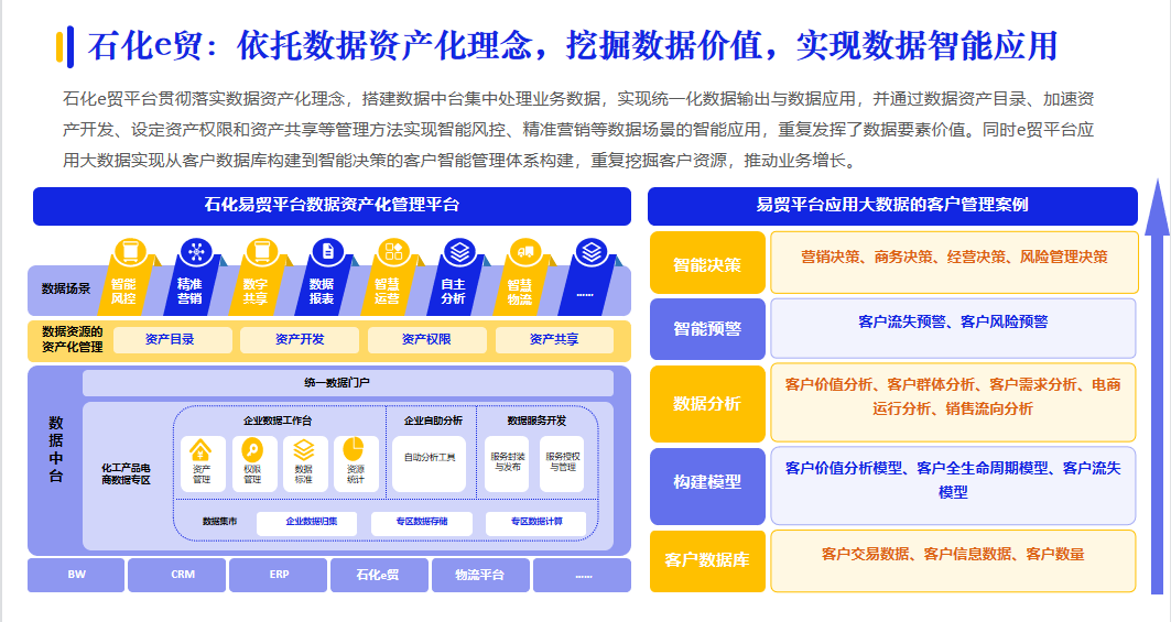 數(shù)字化采購帶來三大供應(yīng)鏈模式變革:商業(yè)模式、管理模式和服務(wù)模式。核心企業(yè)依托資源聚集優(yōu)勢,將其資源整合能力和管理能力向外開放和輸出,提供開放的平臺,實(shí)現(xiàn)盈利,引起商業(yè)模式變革;同時(shí),數(shù)據(jù)價(jià)值逐漸被釋放,實(shí)現(xiàn)數(shù)據(jù)驅(qū)動的供應(yīng)鏈管理模式的變革;例如:石化e貿(mào)落實(shí)數(shù)據(jù)資產(chǎn)化理念,搭建數(shù)據(jù)中臺集中處理業(yè)務(wù)數(shù)據(jù),實(shí)現(xiàn)數(shù)據(jù)智能應(yīng)用。