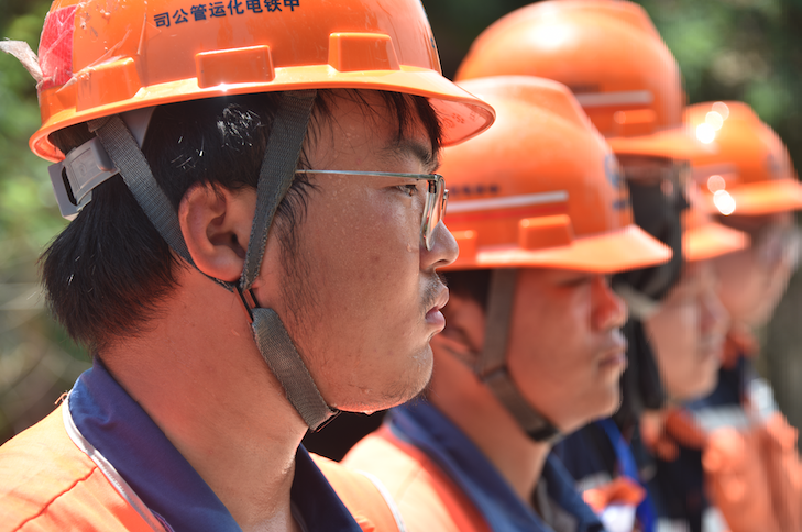 11點(diǎn)55分,封鎖命令一下,劉冉一馬當(dāng)先帶著大家沖到了線路上。由于鐵路線兩邊幾乎沒有任何遮陽的物體,經(jīng)過一上午的暴曬,鐵路線上的溫度已經(jīng)高達(dá)49.8℃,而現(xiàn)在頭頂上的太陽任然不斷地給鐵路上的道砟加熱,此時的鐵路線上,就像是一個巨大的烤箱。劉冉看著遠(yuǎn)處地面上的熱浪,拽了拽濕透后緊貼后背的衣服,招呼著后面的員工“大家動作快點(diǎn),天窗只有109分鐘,不僅要檢修500米的設(shè)備,還要處理3處缺陷?!?/p>