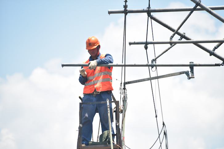 隨著作業(yè)時間的不斷增長,大家的體力也逐漸減少?!鞍?#xff0c;怎么感覺比我平常干高空還累?!贝嫘∨值男±瞵F(xiàn)在已經(jīng)開始?xì)獯跤趿?#xff0c;平日里輕松的車梯輔助工作,今天也變得格外艱難?!熬嚯x天窗作業(yè)還有30分鐘?!眻笤挋C(jī)里傳來駐扎聯(lián)絡(luò)員的聲音。“收到!”說完,劉冉喝完了水杯里的最后一口水,擦了擦即將流進(jìn)眼睛的汗水,加快了干活的動作。