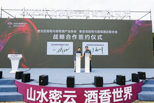 開幕式上,北京市密云區(qū)人民政府同煙臺張?jiān)F咸厌劸乒煞萦邢薰?#xff0c;密云區(qū)葡萄與葡萄酒產(chǎn)業(yè)協(xié)會同秦皇島葡萄與葡萄酒莊聯(lián)合會分別簽署戰(zhàn)略合作協(xié)議,通過增強(qiáng)與先進(jìn)地區(qū)的交流合作,提升密云葡萄酒的個性化和競爭力,同時為密云葡萄酒產(chǎn)業(yè)創(chuàng)新升級打造多場景的開放性平臺。