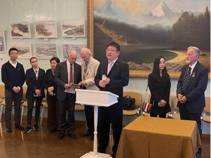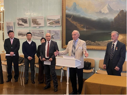 中俄人文合作發(fā)展中心理事長尹斌先生在發(fā)言中談到:“藝術(shù)家劉子輿先生在莫斯科生活多年,在此期間,他給很多俄羅斯人傳授中國的水墨,為發(fā)揚中國文化作出了巨大貢獻(xiàn)?!?/p>