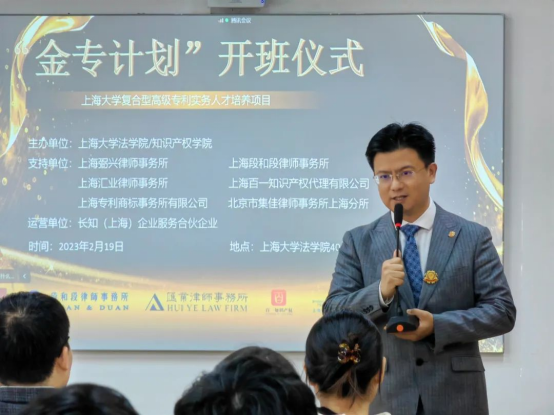 上海段和段律師事務所知識產(chǎn)權中心主任郭國中為“金專計劃”開班儀式致辭時表示,非常榮幸參與“金專計劃”,未來將致力于培養(yǎng)更多專利代理實務人才。