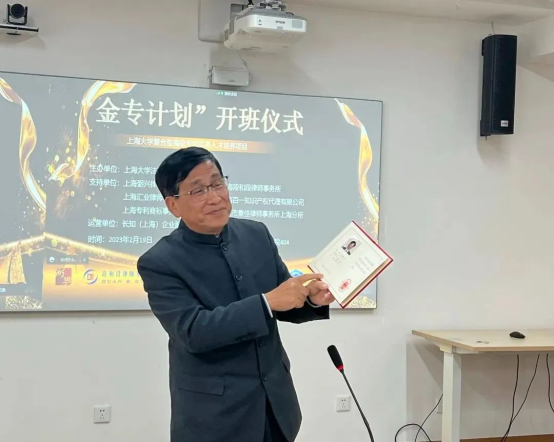 為響應《知識產(chǎn)權強國建設綱要》提出的知識產(chǎn)權人才培養(yǎng),上海大學法學院、知識產(chǎn)權學院依托上海市知識產(chǎn)權培訓基地、上海大學知識產(chǎn)權信息服務中心、上海國際貿易知識產(chǎn)權海外維權服務基地,聯(lián)合上海弼興律師事務所、上海段和段律師事務所、上海匯業(yè)律師事務所、上海百一知識產(chǎn)權代理有限公司、上海專利商標事務所和北京集佳律師事務所上海分所等六家知名專利事務所和律師事務所,產(chǎn)教融合,內外協(xié)同,面向上海大學全校理工科本科生和研究生,開展“金牌”專利代理師、專利工程師、專利律師等復合型專利實務人才培養(yǎng),通過線下實訓、實戰(zhàn)培訓,聚焦于培養(yǎng)專業(yè)性、高端性、復合型和緊缺型專利實務人才?!敖饘S媱潯笔侨珖状斡筛咝B?lián)合服務機構培養(yǎng)專利代理實務人才的培訓班。